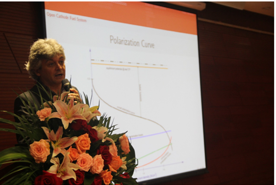 第二位主讲人为Ramon Costa-Castelló教授,他的报告主题为《质子交换膜燃料电池系统的控制和能源管理建模》(《Modeling,Control and Energy Management of PEM Fuel Cell systems》),他采用基于能源的估计策略(EBES)以提供尽可能多的动力,推动车辆获得尽可能多的能量,以最大效率操作燃料电池为目标。同时,利用跳闸能量估计, 防止了主动约束情况,并通过仿真和经验上得到的结果表明:与发动机控制模块(ECMS)相比, 燃油经济性和驾驶性能有所改善。Ramon Costa-Castelló教授又对驾驶条件和车辆质量变化的灵敏度分析后得出, 该策略相比ECMS具有优越性,且EBES 执行简单的数学和逻辑运算, 使之更适合于实时应用。