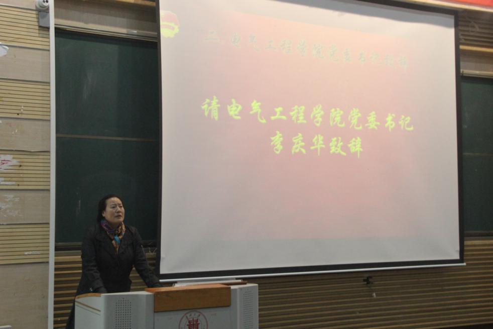 首先,学院党委书记李庆华致辞,李书记首先对换届大会的召开表示祝贺!对上届学生干部的辛劳付出表示感谢!她呼吁全体学生干部要传承好电气工程的“优良传统”,对所有学生干部提出四点希望与要求:一是要学会准确定位,提高政治站位,不忘宗旨:学生干部一定要有大局观、全局观,要提高政治站位,牢记学生干部不是官,而是为学生服务的志愿者;二是学会严格要求,以身作则:要求学生干部在学风、校风、班风建设活动中起表率作用,在遵纪守法方面严格要求自己;三是大胆管理,尽职尽责,学生干部要明确职责,要身在其位,必谋其事,要有所为;四是团结协作,密切配合,学生管理工作是一项系统工作,学生干部既要分工负责、各司其职,又要学会密切配合,通力合作,切忌相互推诿;最后也是最重要的,学生干部要处理好学与干的关系,你们是学生,一定要以学业为重。她预祝大会圆满成功!