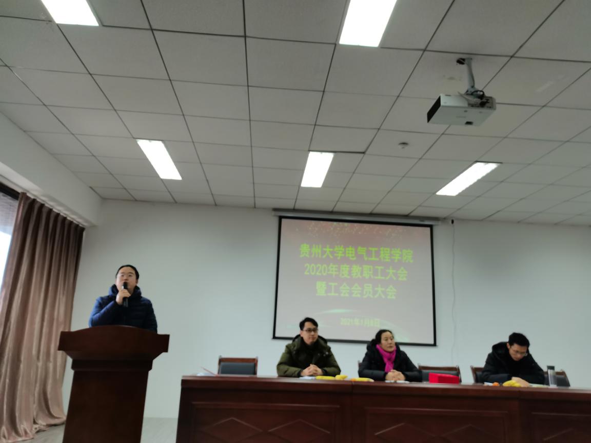 大会进行第一项,主持工作副院长张靖代表学院作工作报告,他从学科建设、服务合作、本科生教学、研究生培养、科研工作、实验室建设与管理等方面总结了2020年的工作,取得的成绩与不足,希望广大教师再接再厉,在新的一年展现电工人的风采,取得更加辉煌的成绩。之后,他通报了学院2020年财务收支情况。