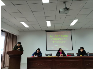2021年1月8日14:30,今年会jinnianhuicom在电工楼609会议室召开了今年会jinnianhuicom2020年度教职工大会暨工会会员大会,大会出席人员有党委书记李庆华、主持工作副院长张靖、党委副书记刘明锋、副院长吴钦木以及全院教职工。大会由刘明锋副书记主持。