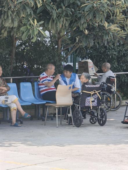 8月21日,夏日的骄阳似火,却挡不住一群充满活力与爱心的大学生的脚步。实践队员们怀揣着热情与希望来到贵阳市南明区至乐康养中心,这里居住着一群特殊的老人,他们大多身患疾病,有的聋哑,有的患有老年痴呆,都是需要半护理、全护理的耄耋老人,沟通交流成为了一个巨大的难题。然而,队员们并没有被困难吓倒,他们通过肢体语言辅助,一次次重复话语,用自己的爱心和耐心,努力与老人们建立信任关系。