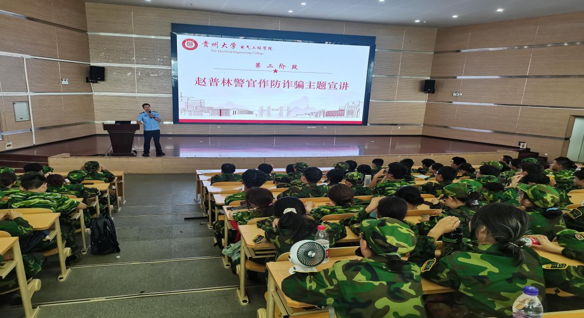 大会进入宣讲培训阶段,松山派出所赵普林警官进行防诈骗主题宣讲,通过生动的案例为新生们普及防诈骗知识,提高新生的防范意识。