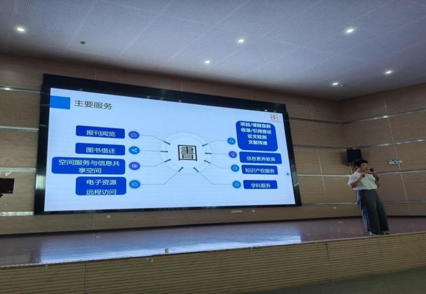 图书馆杨馥榕老师以“知识宝库—探索图书馆的奥秘”为主题进行图书馆入馆培训,帮助新生更好地了解和利用学校图书馆资源。