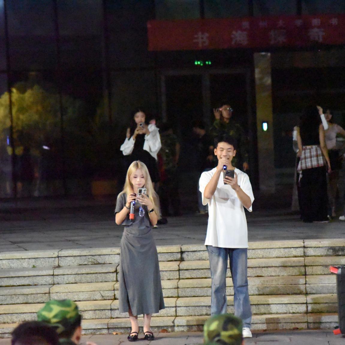 202497-8日晚上,学院学生社团于学院连队军训场地进行了两场迎新路演。本次路演为刚刚踏入大学校园的新同学们提供了一个展示自我、放飞梦想的璀璨舞台。此次路演不仅展现了新生们的多才多艺与无限潜力,更为校园生活增添了浓墨重彩的一笔。