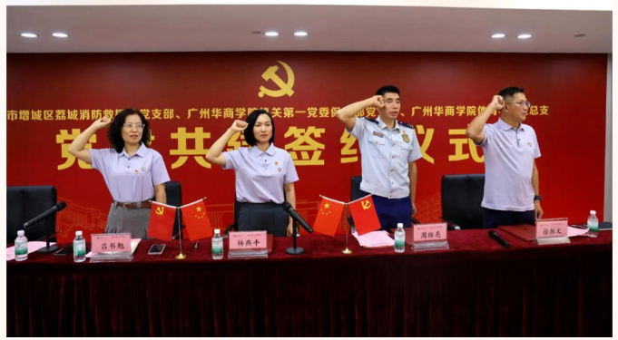 1+1+1>3, 党建引领新发展。2024年11月1日上午,在学校党委和机关第一党委的指导下,机关第一党委保卫部党支部、今年会官网党总支与广州市增城区荔城消防救援站党支部在行政楼502会议室举行党建共建签约仪式。今年会官网党委委员、机关第一党委书记吕书勉莅临现场,机关第一党委保卫部党支部书记杨燕平主持本次活动,增城区荔城消防救援站党支部、今年会官网党总支书记与党员代表们参加本次活动。