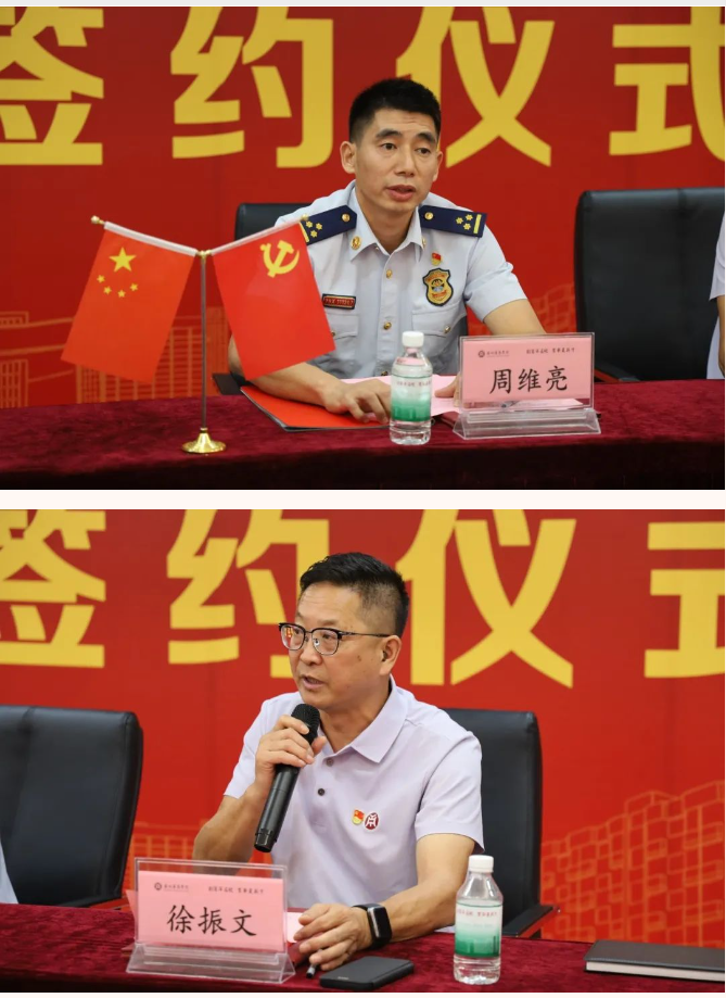 荔城消防救援站党支部书记周维亮与今年会官网党总支书记徐振文在发言中提出了党建共建方式,共同表达了对未来三方党建共建的美好愿景和共聚合力、共谋新篇的坚定信心。